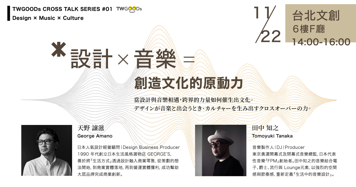 二人將以「設計 × 音樂 = 創造文化的原動力」為題,